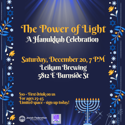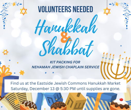 Join JFGP to build mini Shabbat & Hanukkah kits during the EJC's Hanukkah Market on Dec. 13 @ 5:30. Kits will be distributed by Nehamah, Portland's Jewish Chaplain Service, to individuals who don't have access to Judaica to celebrate the holidays.