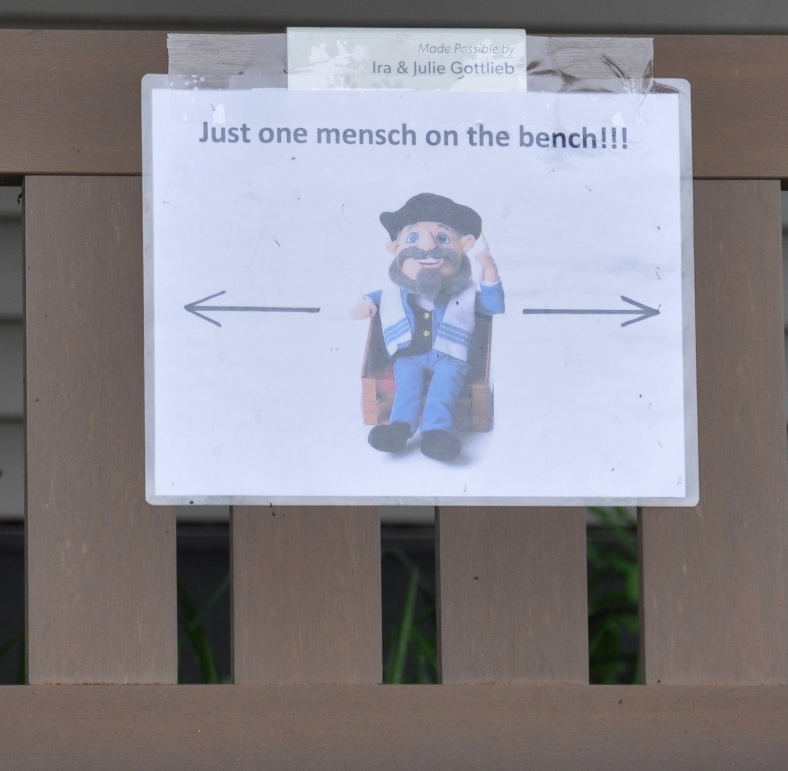 Residents and caregivers stood on sidewalks or patios and sat on benches (marked One Mensch Per Bench) outside Rose Schnitzer Manor, the Harold Schnitzer Center for Living and Robison Rehabilitation Center to wave, applaud and smile.