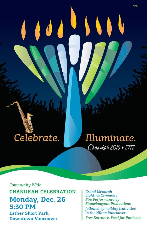 Grand Menorah Lighting Ceremony & Fire Performance by Flamebuoyant Productions at Esther Short Park. Followed by holiday festivities in the Vancouver Hilton.