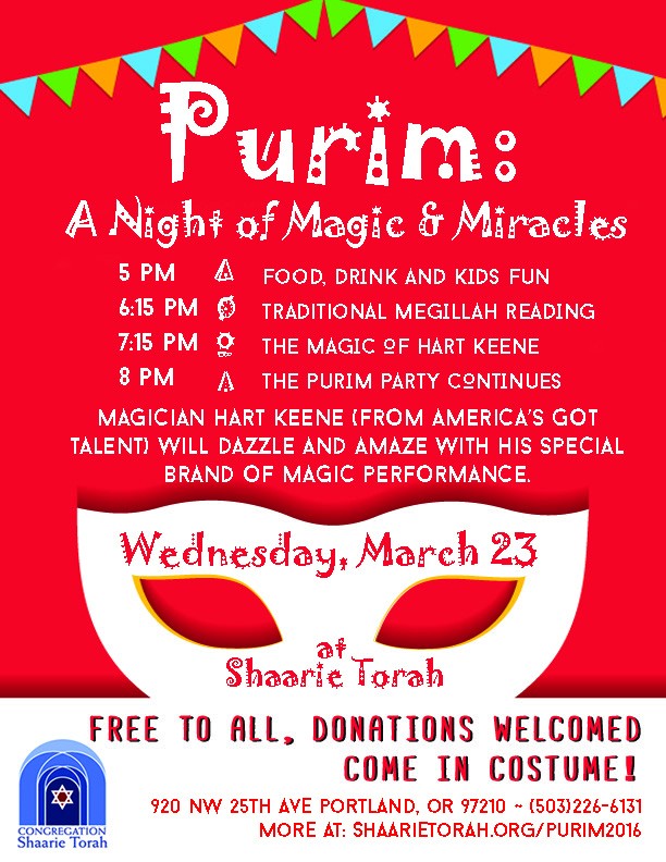 Join us at Congregation Shaarie Torah for a fun and magical Purim celebration.