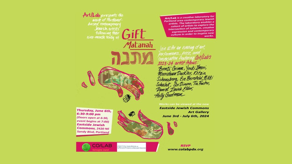 Art/Lab is a creative laboratory for Portland area contemporary Jewish artists. The laboratory enables a cohort of artists to explore the intersection of Judaism, creative expression and contemporary culture in order to inspire new