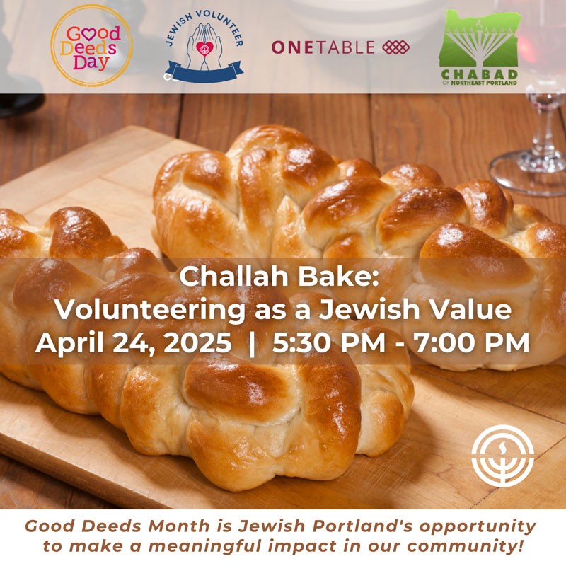 Honor Yom HaShoah (Holocaust Remembrance Day) while emphasizing community and kindness. Join JFGP, OneTable, and Chabad of Northeast Portland for a unique volunteer event. Volunteers will bake challah while exploring the impact and expanding the definition of Jewish volunteerism.