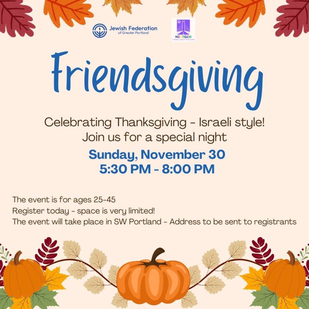 Join us for a fun night where we will have an Israeli take on thanksgiving!