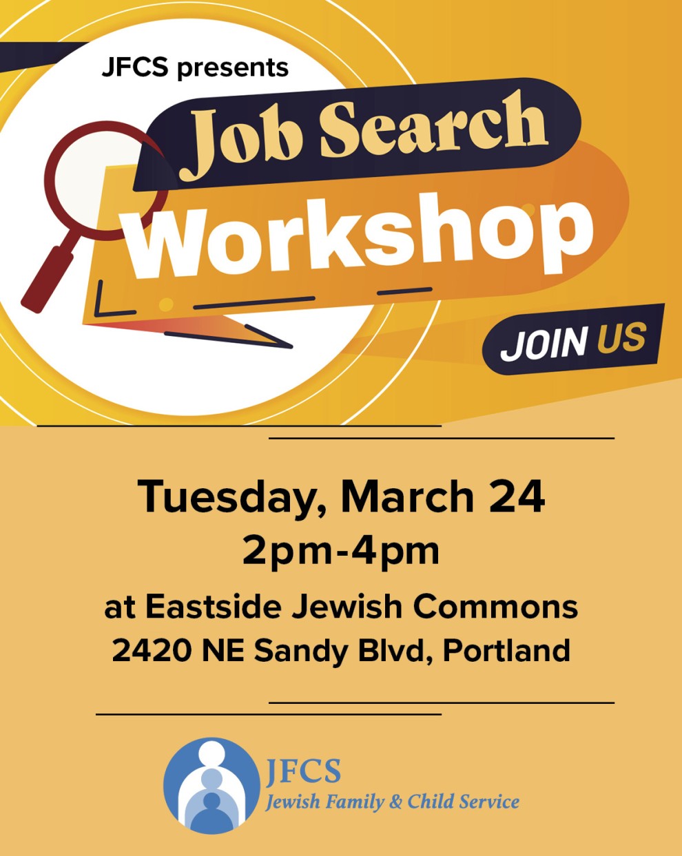 No cost to attend but registration required. Learn more and register here: https://www.jfcs-portland.org/job-workshop/