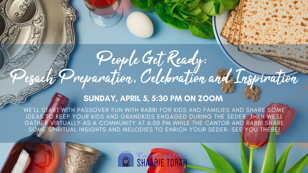 We'll start with Passover fun with Rabbi for kids and families and share some ideas to keep your kids and grandkids engaged during the Seder. Then we'll gather virtually as a community at 6:00 pm while the Cantor and Rabbi share some spiritual insights and melodies to enrich your Seder. See you there!