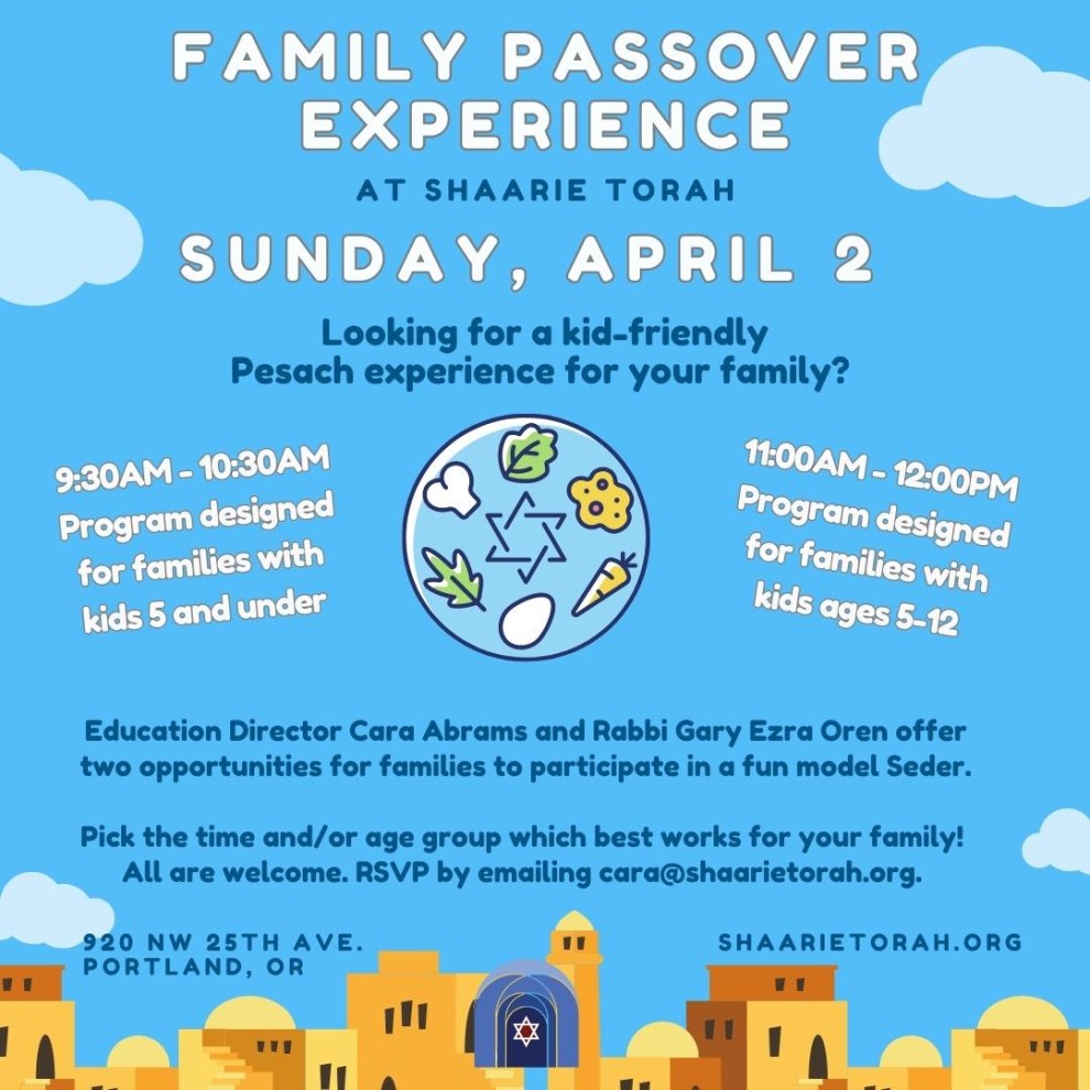 Family Passover Experience: Kids 5-12 & Family At Shaarie Torah