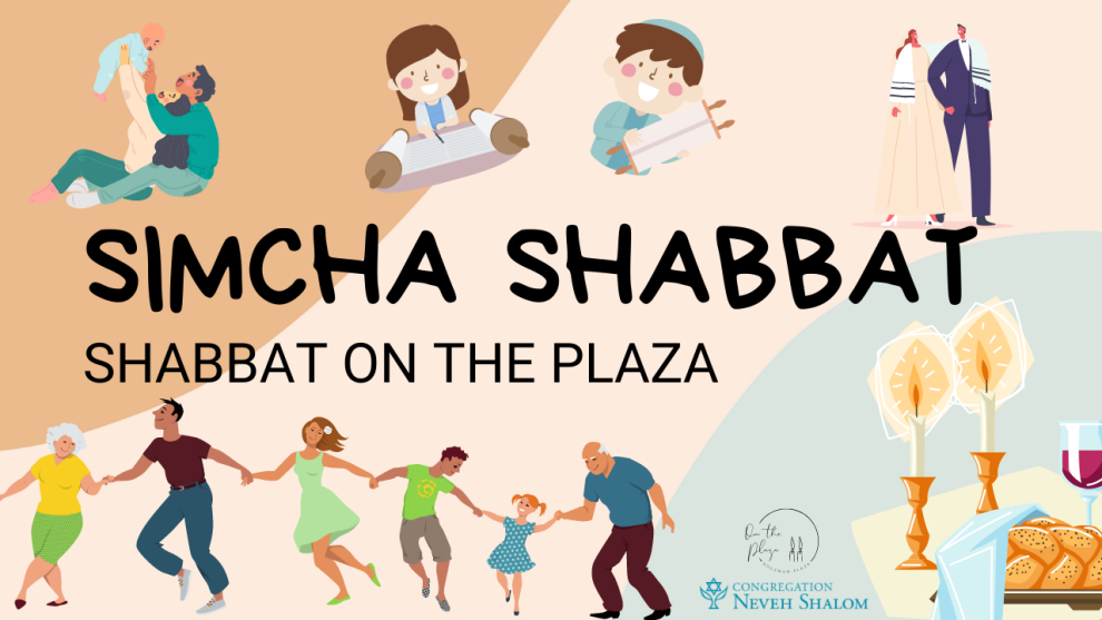 At Congregation Neveh Shalom, we are delighted to recognize the many people in our Kehillah who have experienced simchas/celebrations in the past year – B’nai Mitzvah, new babies, weddings, conversions, and all other joyous occasions, followed by an oneg burrito bar. If you have had one of these simchas, please come join us. If you have not, please come support and celebrate with those who have! No RSVP needed. Service begins at 6:15 pm on the Holzman Plaza.