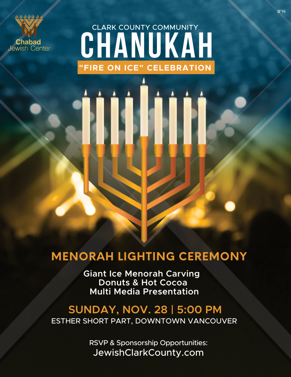 Join us on the first night of Chanukah for the lighting of the Grand Menorah. This is a free community event.