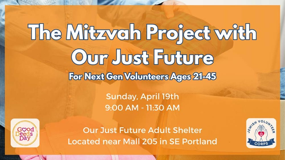 Join the Jewish Volunteer Corps for a meaningful day of service as part of Jewish Federation of Greater Portland's Good Deeds Month! The Mitzvah Project provides quarterly hands-on volunteer days for our NextGen volunteers - young adults ages 21–45. We're coming together to give back, build community, and make a tangible impact in the greater Portland area.