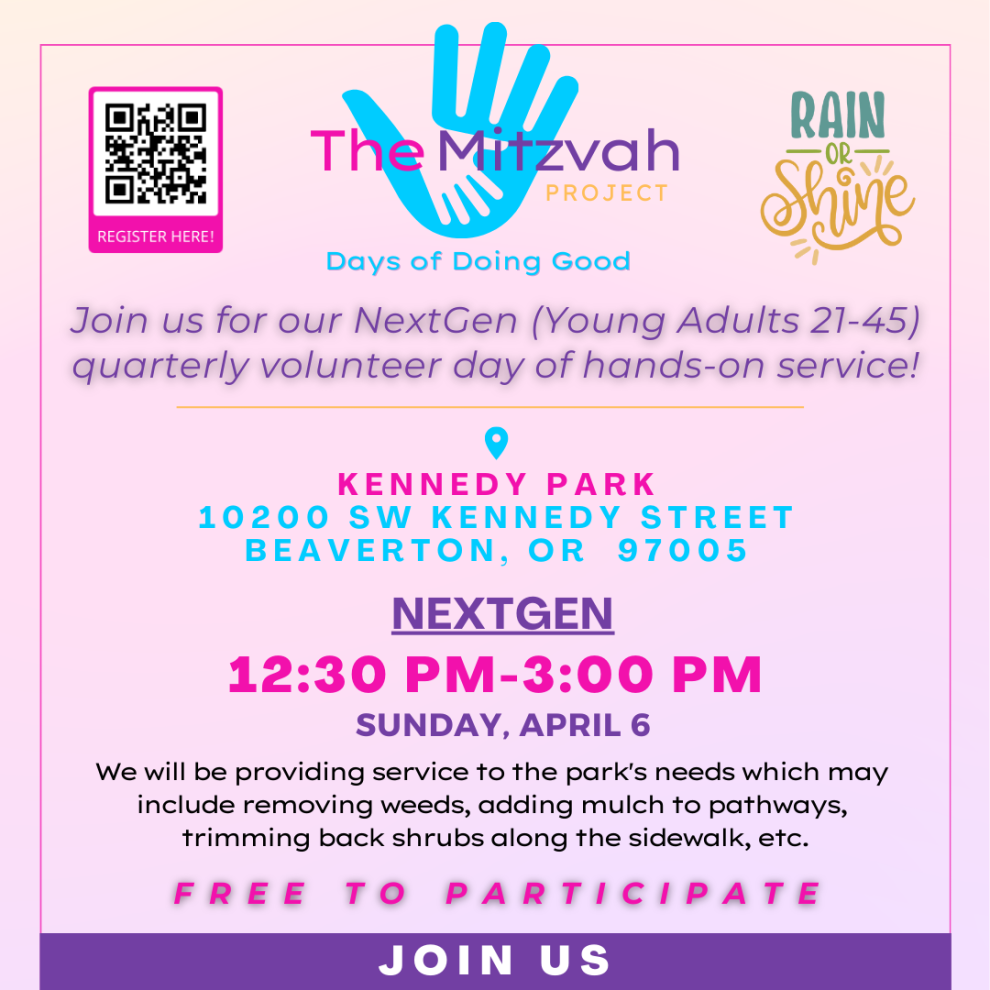 The Mitzvah Project will be assisting Tualitin Parks and Recreation District at Kennedy Park.