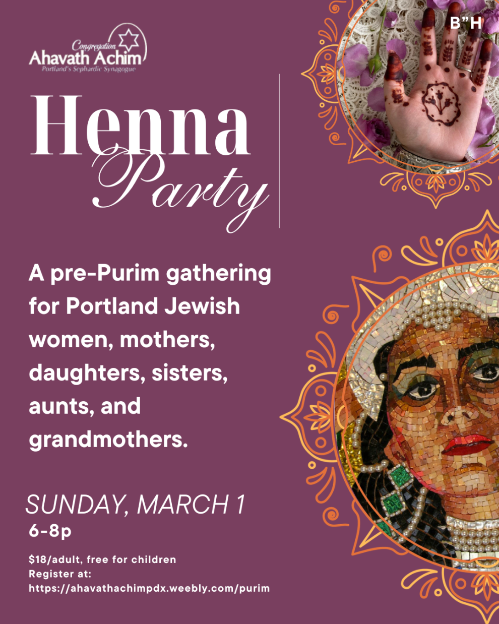 Join us for a pre-Purim gathering of sisterhood, sweets, and celebration - for Portland Jewish women, mothers, daughters, sisters, aunts, and grandmothers.