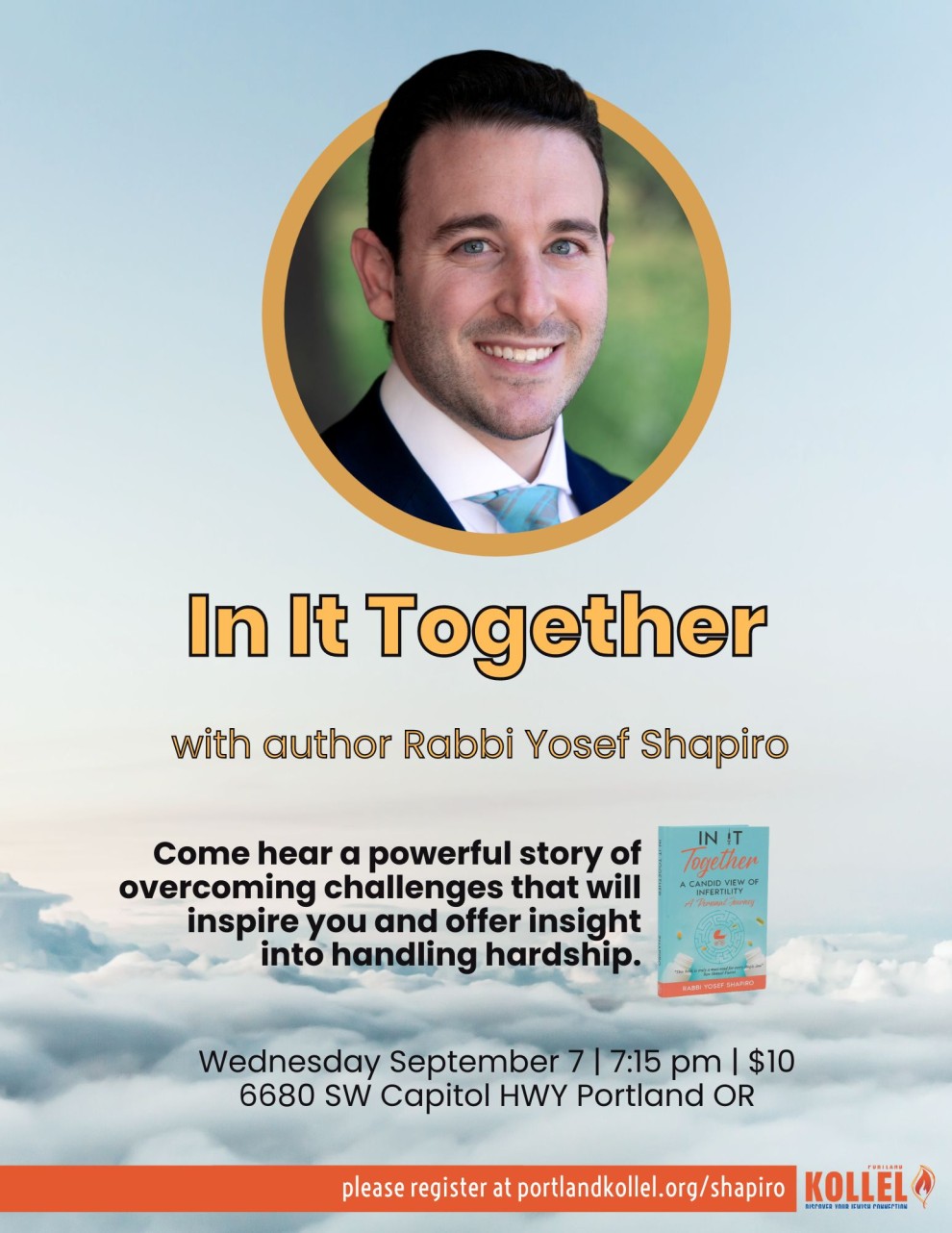 As part of our Elul class offerings, The Portland Kollel is excited to host Rabbi Yosef Shapiro, who will speak about the struggles and the path to parenthood. His powerful story offers a glimpse into the world of infertility, suffering, and connecting with G-d in the midst of hardship.