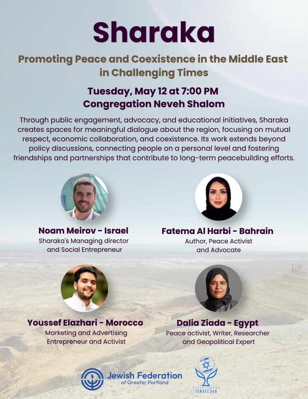 Through public engagement, advocacy, and educational initiatives, Sharaka creates spaces for meaningful dialogue about the region, focusing on mutual respect, economic collaboration, and coexistence. Its work extends beyond policy discussions, connecting people on a personal level and fostering friendships and partnerships that contribute to long-term peacebuilding efforts.