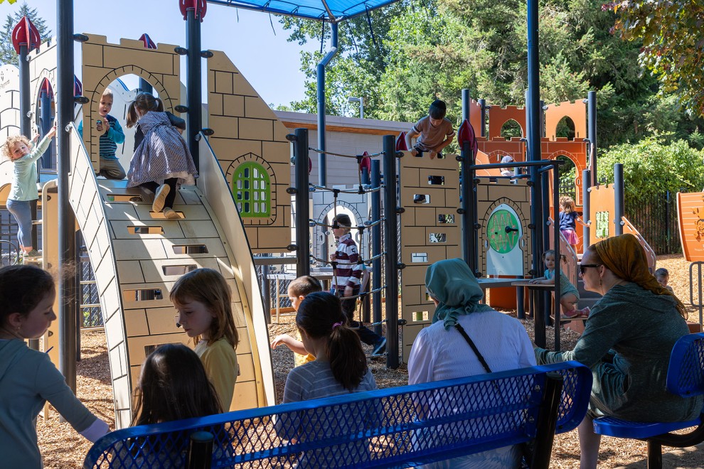 Groupp’s mother, Elyse Groupp, is a scientist and experienced grant writer. They spoke with Steve Lebwohl of Wildwood Playgrounds, a member of Congregation Neveh Shalom, who has been building playgrounds for nearly five decades, including for many of Portland’s synagogues.