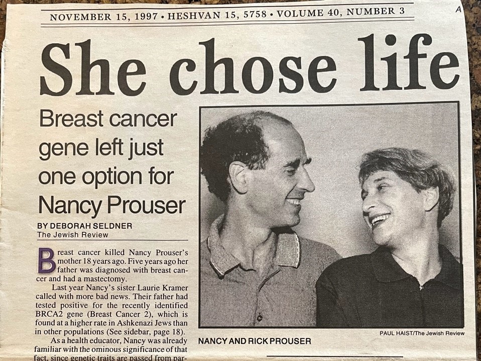 PHOTO: In 1997, Portlander Nancy Prouser took a then relatively new genetic test after her father tested positive for a BRCA mutation. He was screened after he developed breast cancer. Prouser’s mother died of breast cancer when Prouser was just 28. This article in the Nov. 15, 1997, Jewish Review shares her journey. Now cancer screening is easier thanks to a national initiative from JScreen.