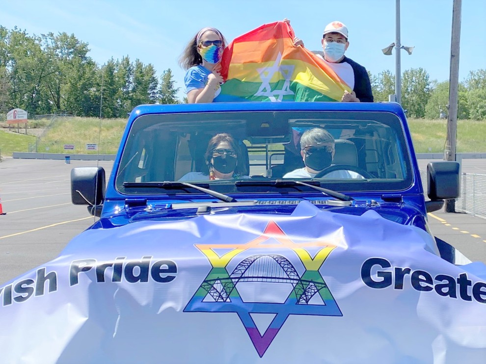 PHOTO: Last year Liza and Beth Milliner, Danit Rothstein and Rachel Nelson represented the Jewish community in Pride at the 2021 PrideNW parade in a car draped with Pride banners from the Jewish Federation of Greater Portland, Portland Jewish Academy and Congregation Neveh Shalom. This year the parade returns to its usual format of groups marching together downtown.