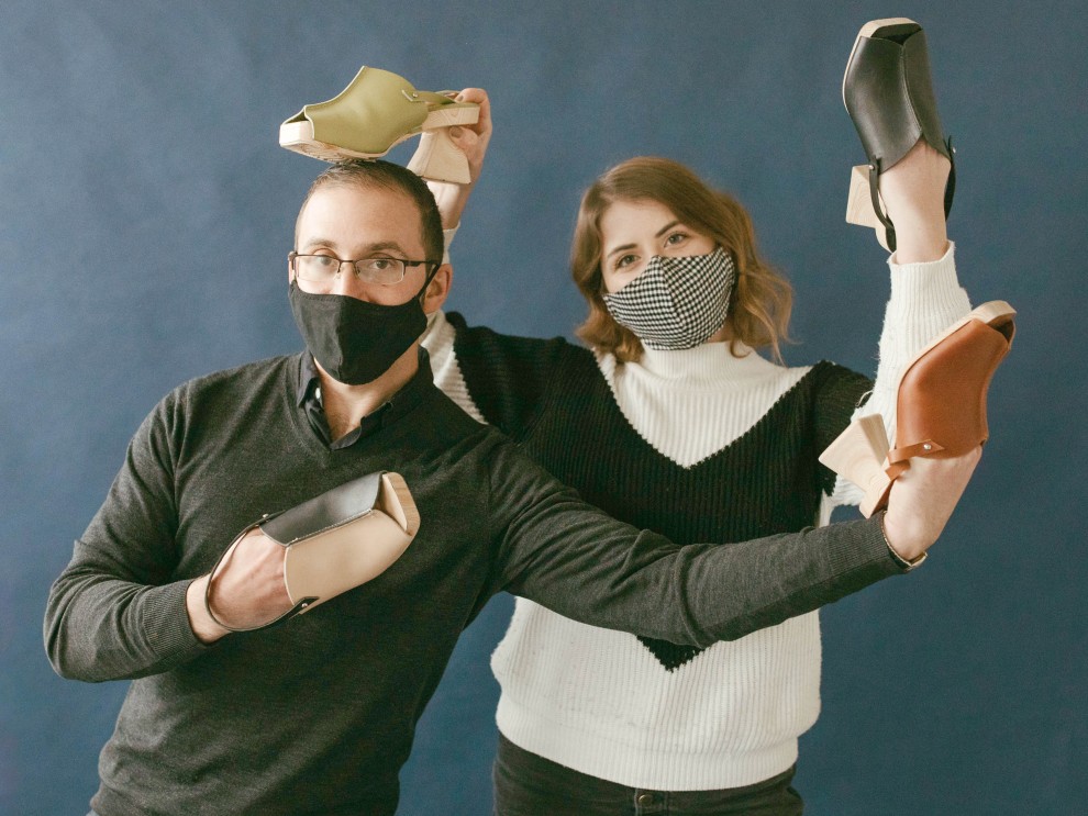 PHOTO: HILOS co-founders Elias Stahl and Gaia Gialadi show off the shoes that impressed the venture capital judges at PitchFestNW.