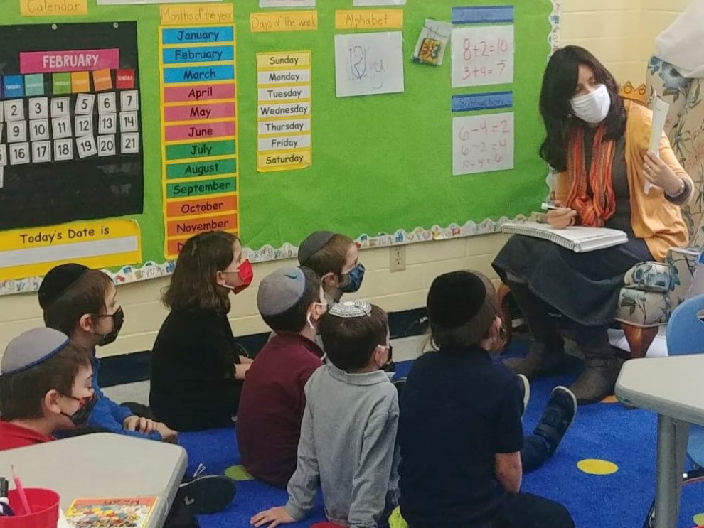 PHOTO: Maayan Torah General Studies Principal Aviel Brodkin teaches a first grade lesson in February 2020. She plans to go on temporary leave to continue her own education at the end of this school year.