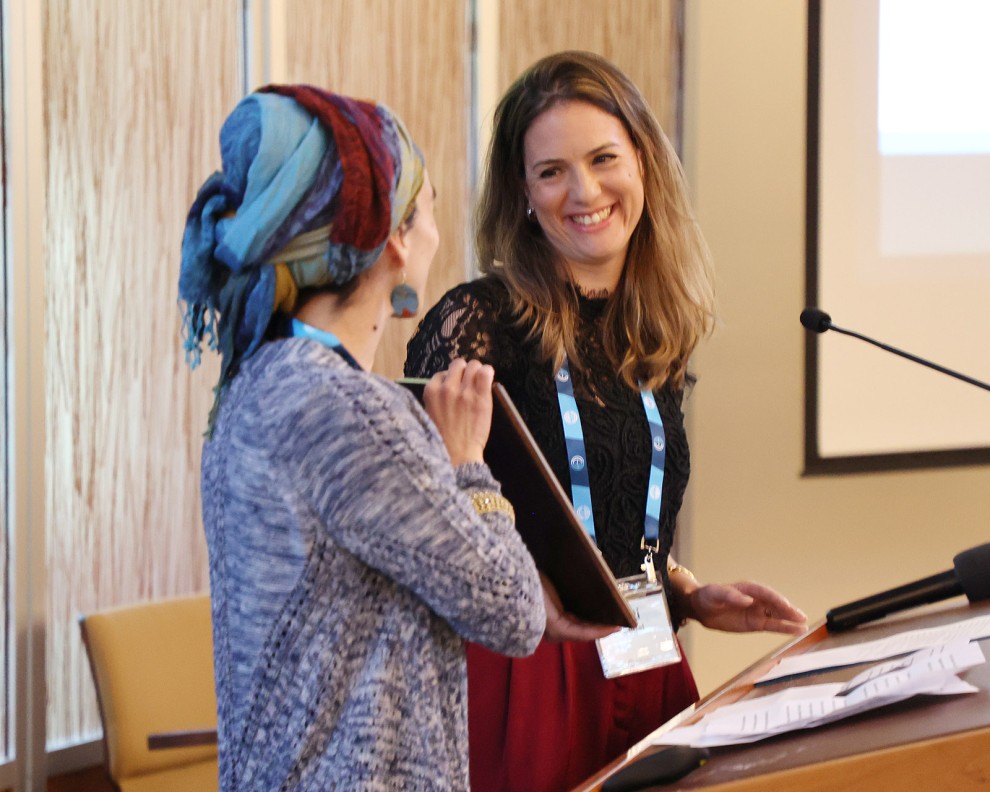 PHOTO: Etti Segal, right, accepts the 2024 Laurie Rogoway Outstanding Jewish Professional Award at the Jewish Federation of Greater Portland's Annual Meeting. Nominations are now open for this year's award. (Rockne Roll/Jewish Review file)
