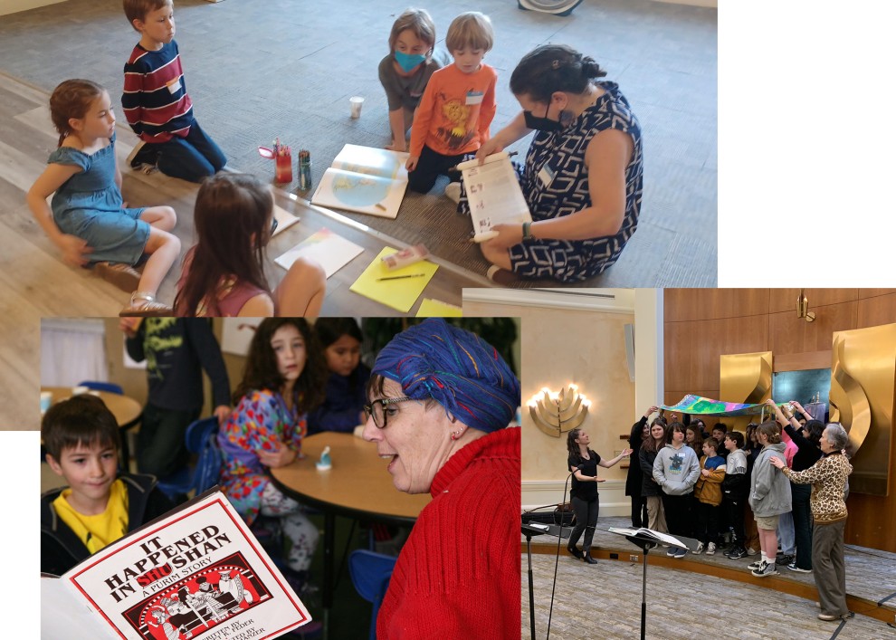 PHOTO: Clockwise from top left, scenes from Kol Shalom Sunday School, Congregation Beth Israel Religious School and Nashira Project at Congregation Shir Tikvah. (Courtesy Photos)