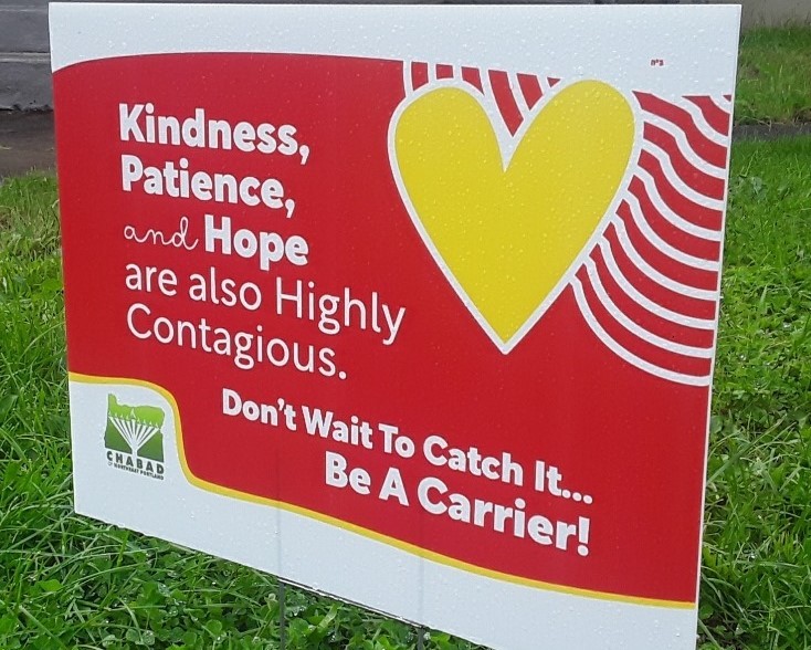 Though NE Portland Chabad started distributing the signs before the killing of George Floyd, he says, “People have expressed more interest in the signs since the protests started. People are looking for positive messages.”