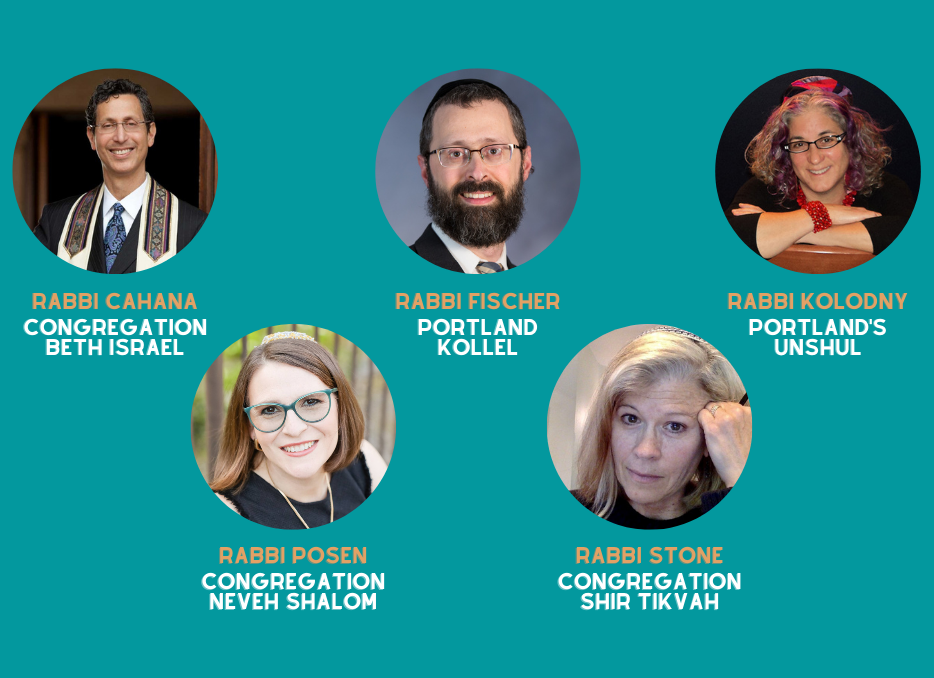 The roundtable will feature Rabbi Michael Cahana (he/him), Congregation Beth Israel; Rabbi Tzvi Fischer (he/him), Portland Kollel; Rabbi Debra Kolodny (they/them), Portland’s UnShul; Rabbi Eve Posen (she/her), Congregation Neveh Shalom; and Rabbi Ariel Stone (she/her, they/them), Congregation Shir Tikvah.