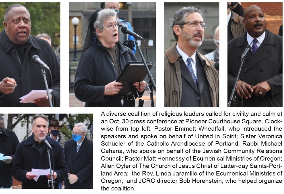 Religious leaders from many faiths gathered in Pioneer Courthouse Square Oct. 30 to call for peace and civility. Now the broad-based coalition seeks ways to further that goal.