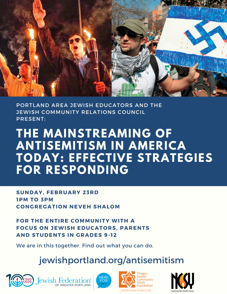 If you have experienced antisemitism in your schools, please fill out this link and call Jewish Federation of Greater Portland at 503-245-6219 for additional resources and support.