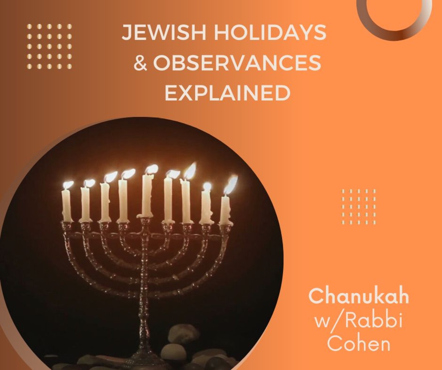 Chanukah is an 8-day holiday, celebrating our freedom. This year, it starts the evening of December 18, and continues through sunset of December 26.