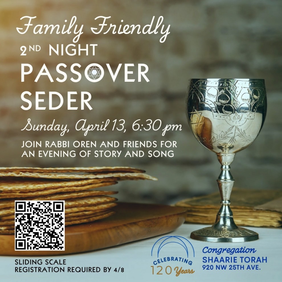 Join us for our Community 2nd night Seder on Sunday, April 13th.