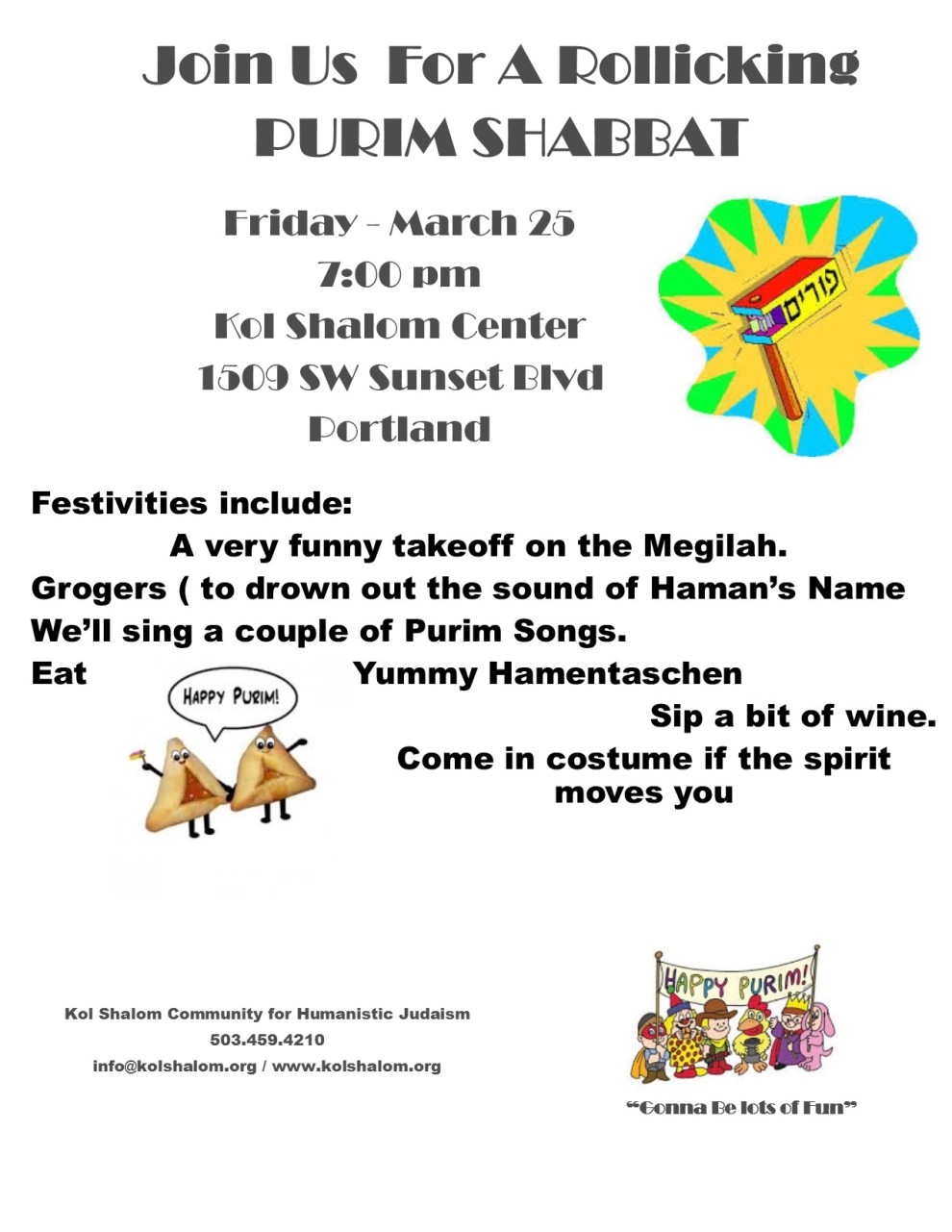 Join the Kol Shalom Community for a Rollicking Purim Shabbat.