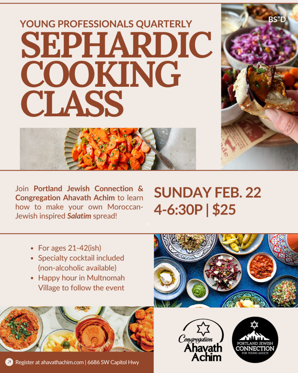 Register here: https://ahavathachimpdx.weebly.com/sephardic-cooking-young-professionals.html