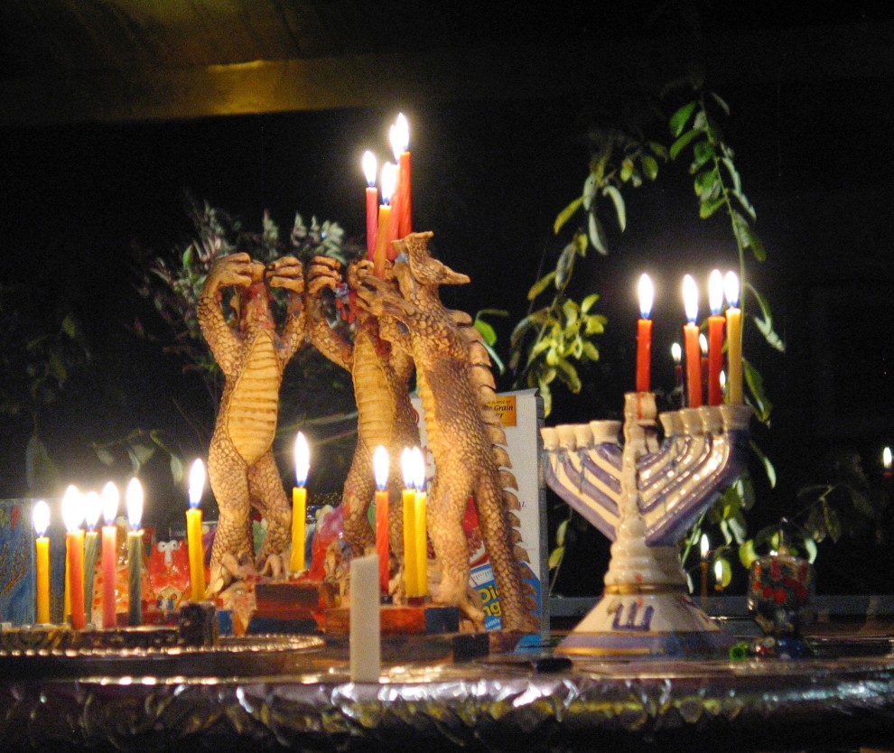 Enjoy a pot-luck vegetarian Hanukah dinner with all kinds of Latkes and home-made Hanukah jelly donuts (sufganiyot) - (made by the rabbis). Come ready for a theatrical presentation of Eric Kimmel's The Hanukah Guest, candle lighting, dreidel games and the opportunity to create a Hanukah menorah to take home.