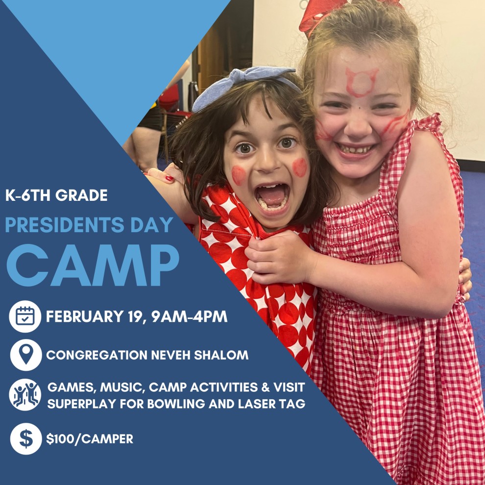 Come spend your Presidents’ Day with your BB Camp friends! Meet at Neveh Shalom to kick off the day with games, music, and camp activities. Then we will go on a field trip to SuperPlay for bowling and laser tag. Pick-up will be at Neveh Shalom.