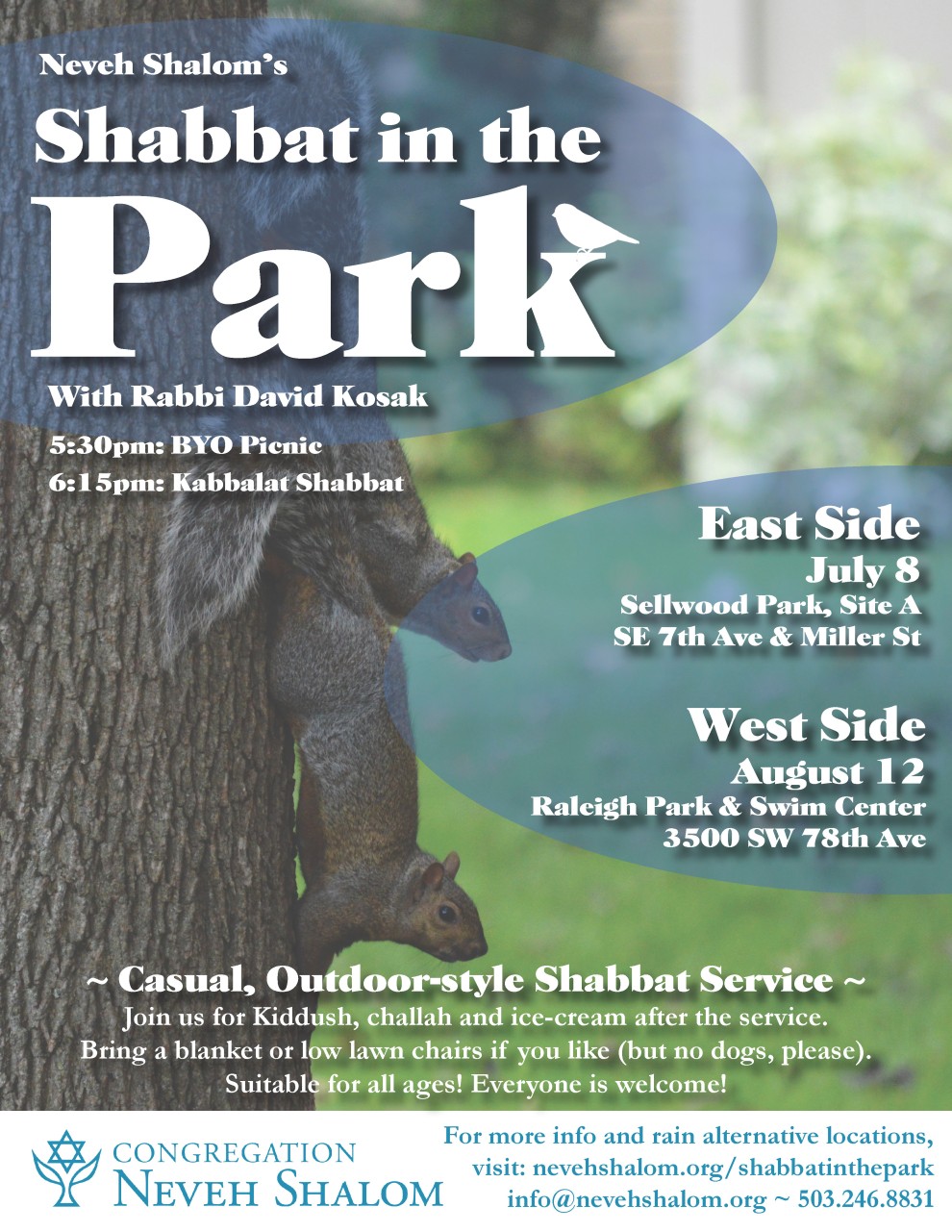 Join Rabbi David Kosak for a Westside Shabbat in the Park.